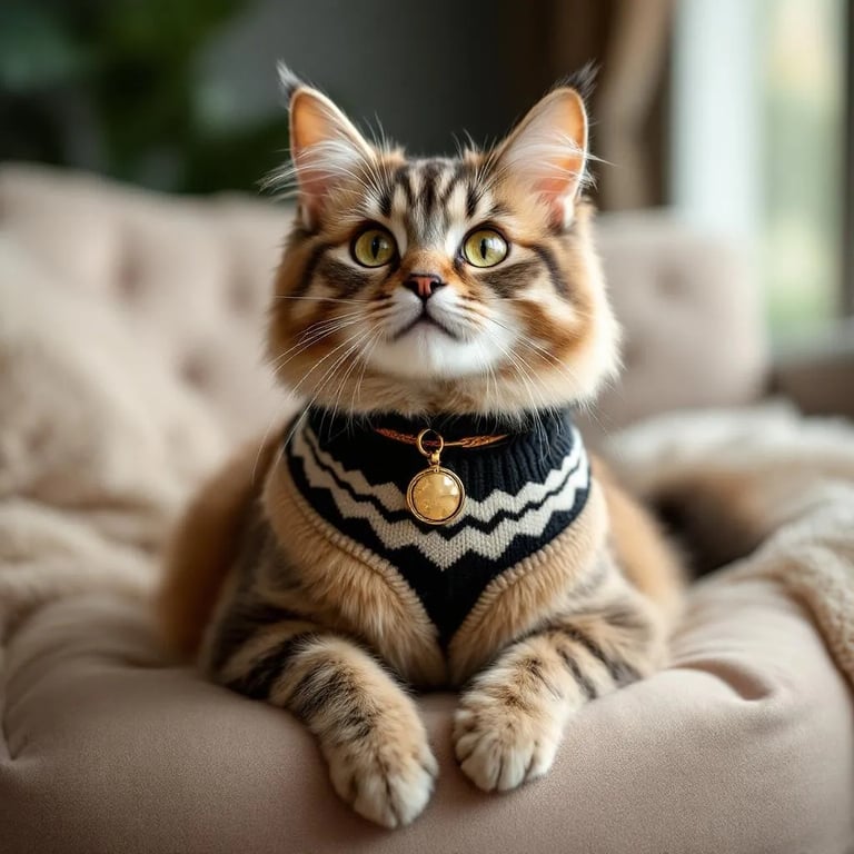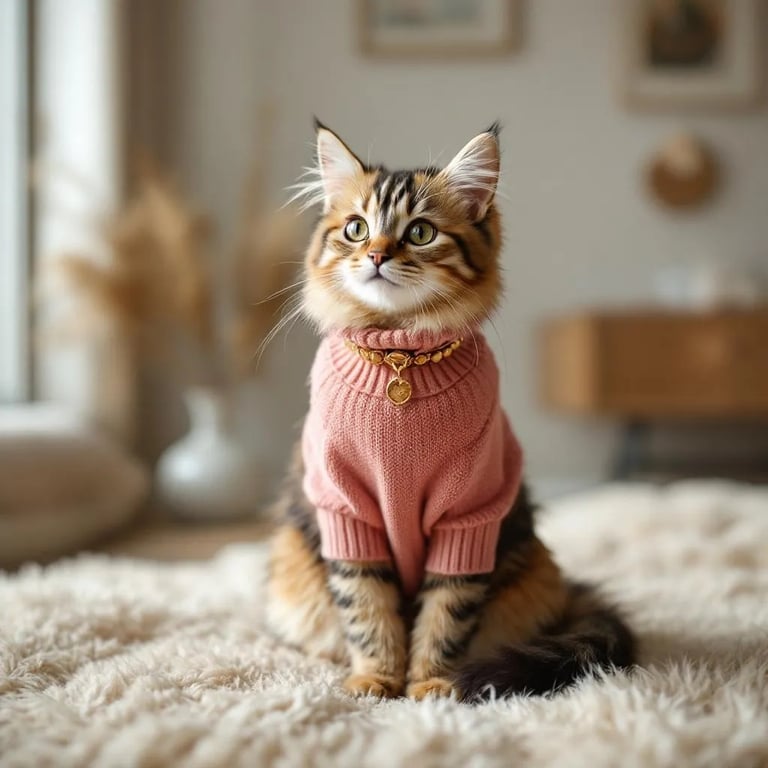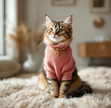 Stylish apparel for cats, from seasonal jackets to elegant sweaters and accessories. Each piece blends comfort, durability, and refined style perfect for cats whose wardrobe matches their lifestyle.