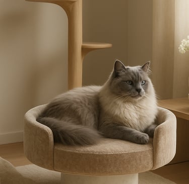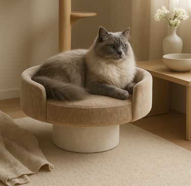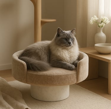 Elegant sanctuaries designed for the modern feline. From sculptural cocoons to velvet loungers, each piece merges plush comfort with architectural form — perfect for interiors where sophistication meets serenity.