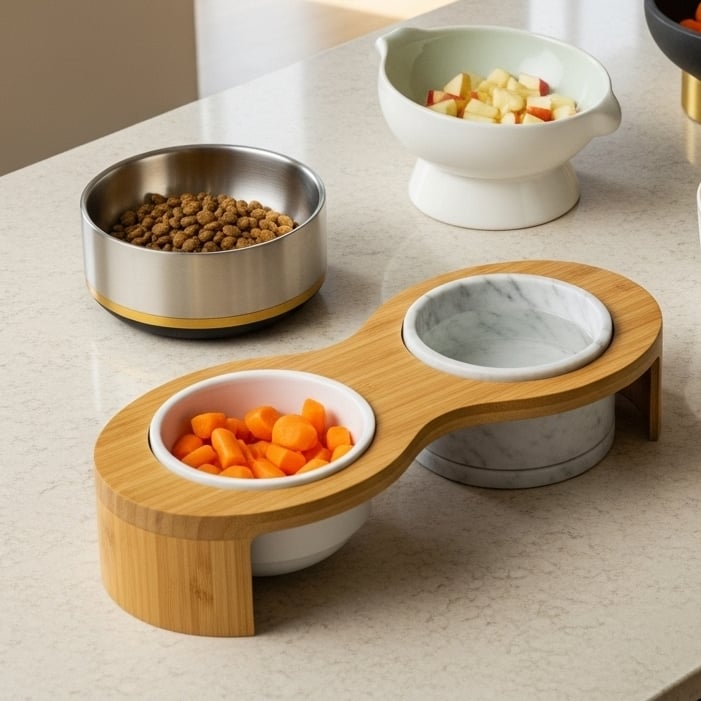 Refined dining accessories crafted to complement minimalist and modern spaces. From marble-based feeders to elevated ceramic bowls, each piece combines hygienic design with sculptural beauty.