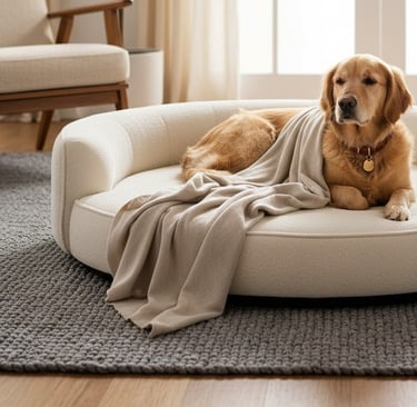 A curated selection of designer dog beds that blend orthopedic comfort with refined style. Each piece is chosen for its craftsmanship and harmony with modern interiors where design meets everyday comfort.